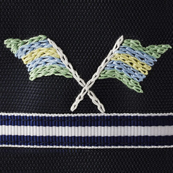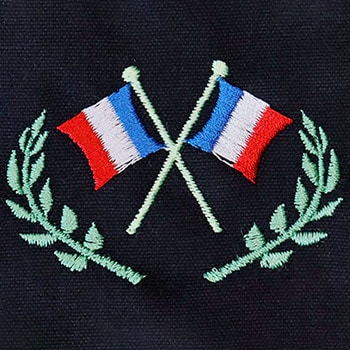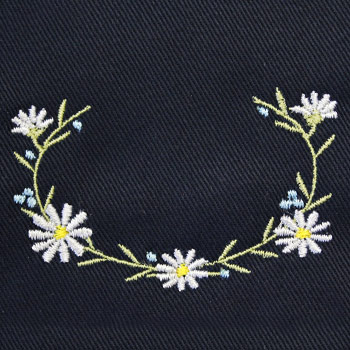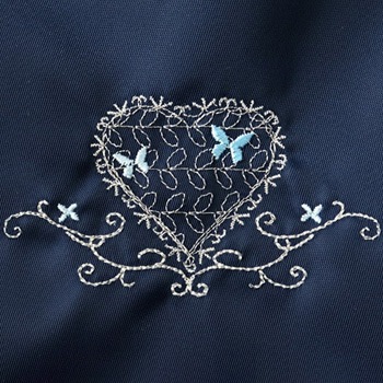 専用ミシンでオリジナルデザインのモチーフをお刺繍いたします。 お品物にあわせたデザインのサイズ調整や、デザインの一部変更なども可能です。 ※生地によっては刺繍のまわりにひきつれが生じる場合があります。 ※デザインによって料金が異なりますので、詳細はお問い合わせください。